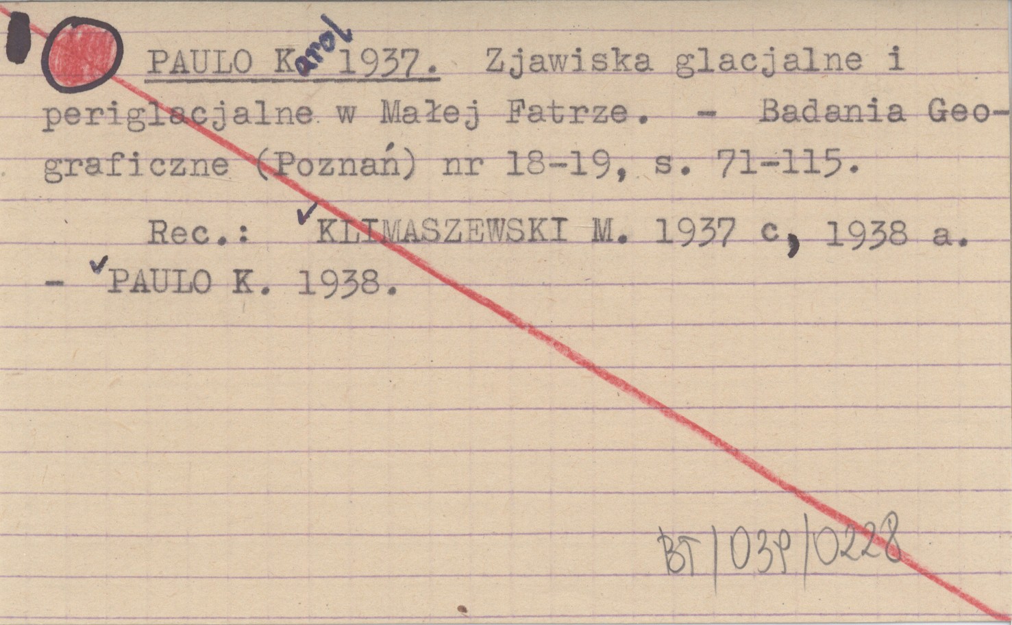Badania Geograficzne (Poznań) , Nr 18-19: 71-115. REC: KLIMASZEWSKI M. 1937 c, 1938 a ; PAULO K. 1938 ;