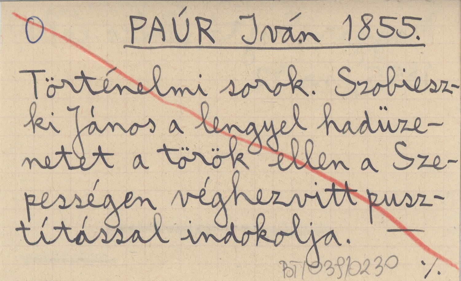 PAÚR Iván 1855 Történelmi sorok. Szobieszki János a lengyel hadüzenetet a török ellen a Szepességen véghezvitt pusztítással indokolja.