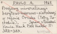 PAULO A. 1967 Przejawy mineralizacji barytowo-kwarcowo-siarczkowej w rejonie Ornaku (Tatry Zachodnie).