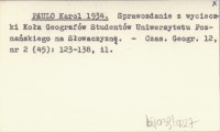 PAULO Karol 1934 Sprawozdanie z wycieczki Koła Geografów Studentów Uniwersytetu Poznańskiego na Słowaczyznę.