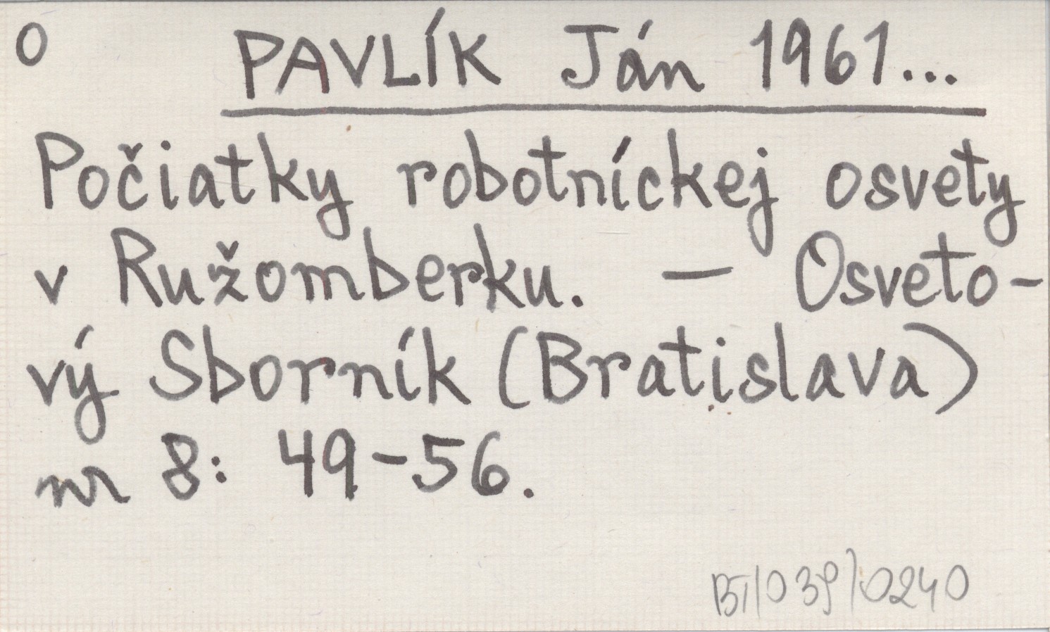 PAVLÍK Ján 1961... Počiatky robotníckej osvety v Ružomberku.