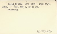 Pavel Križko, 1841 30/5 - 1902 25/3. 1902