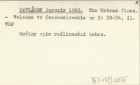 PAVLÁSEK Jaromír 1980 The Tatran flora.