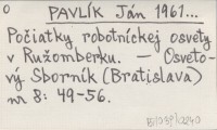 PAVLÍK Ján 1961... Počiatky robotníckej osvety v Ružomberku.