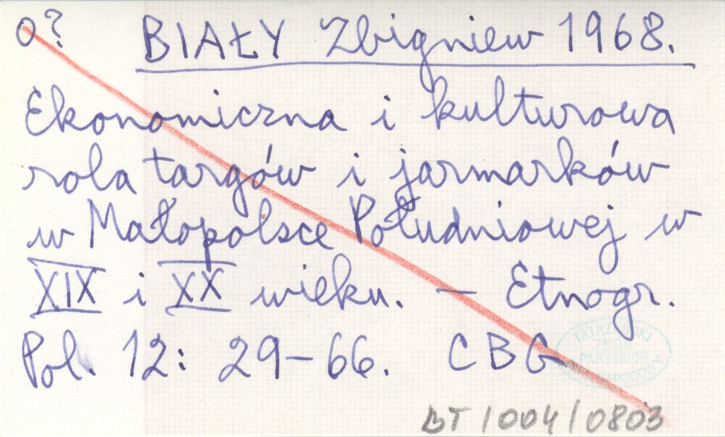 BIAŁY Zbigniew 1968 Ekonomiczna i kulturowa rola targów i jarmarków w Małopolsce Południowej w XIX i XX wieku.