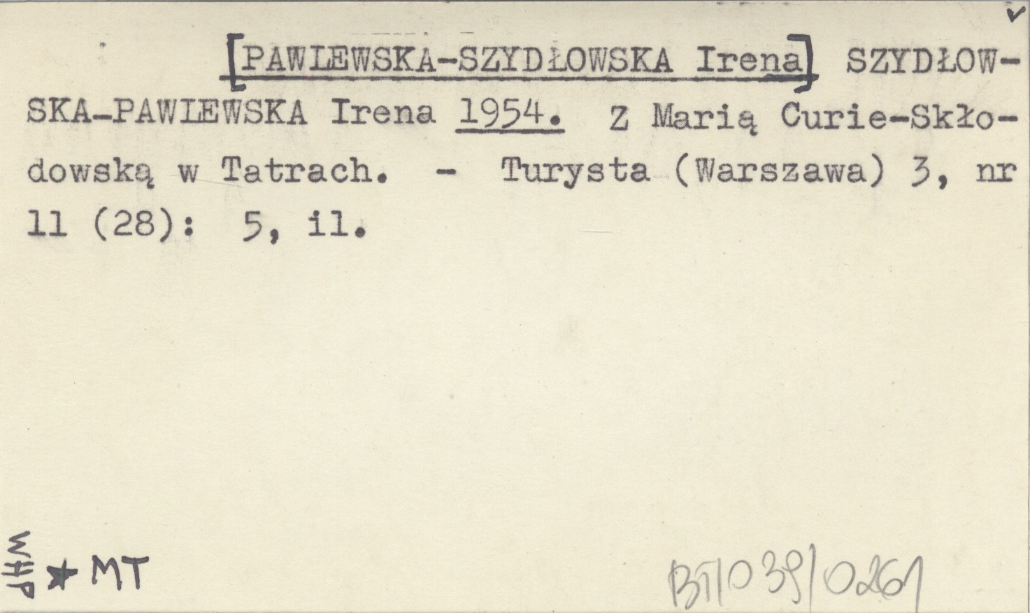 SZYDŁOWSKA-PAWLEWSKA Irena [PAWLEWSKA-SZYDŁOWSKA Irena] 1954 Z Marią Curie-Skłodowską w Tatrach.
