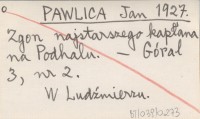 PAWLICA Jan 1927 Zgon najstarszego kapłana na Podhalu.