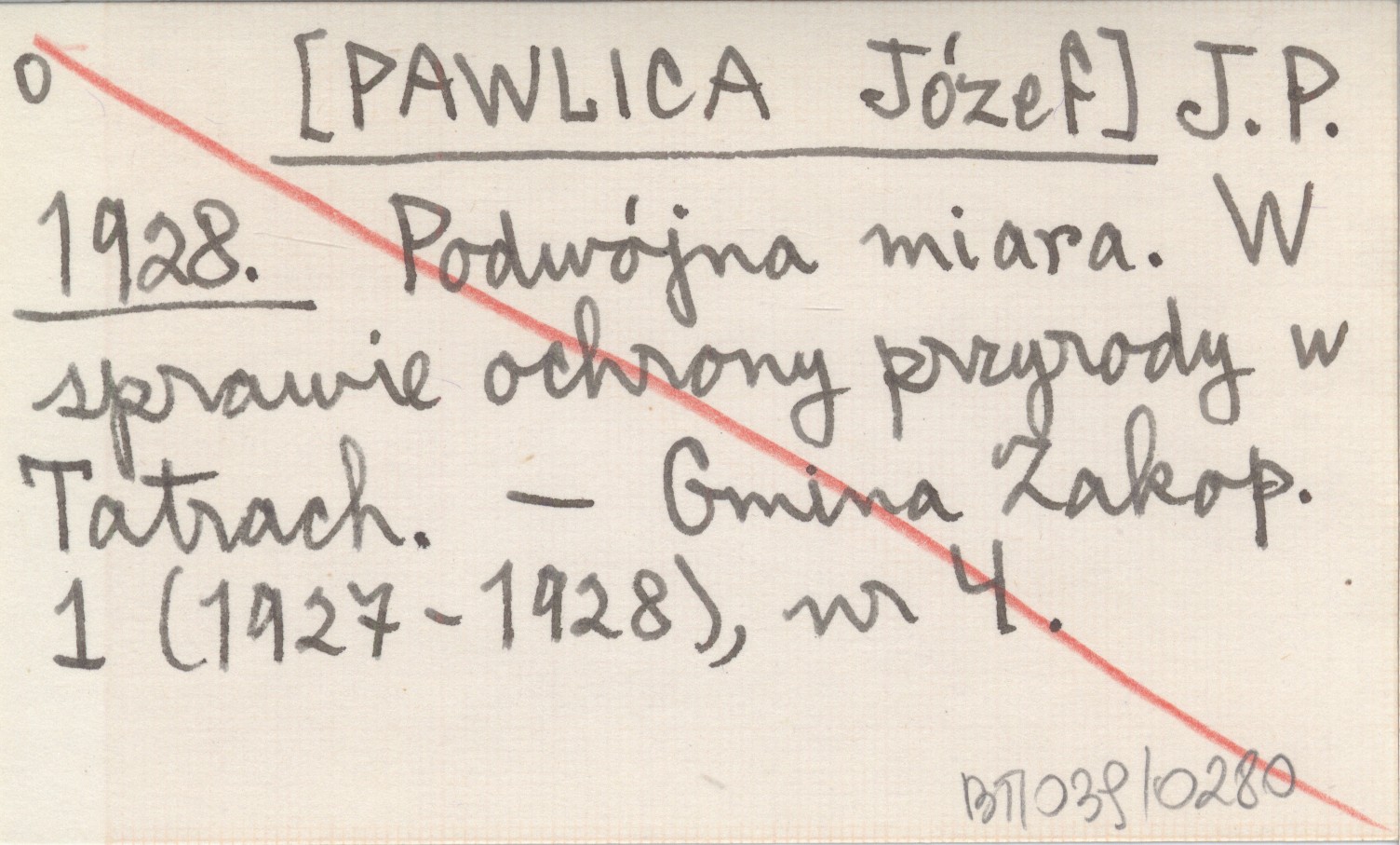 J. P. [PAWLICA Józef] 1928 Podwójna miara. W sprawie ochrony przyrody w Tatrach.