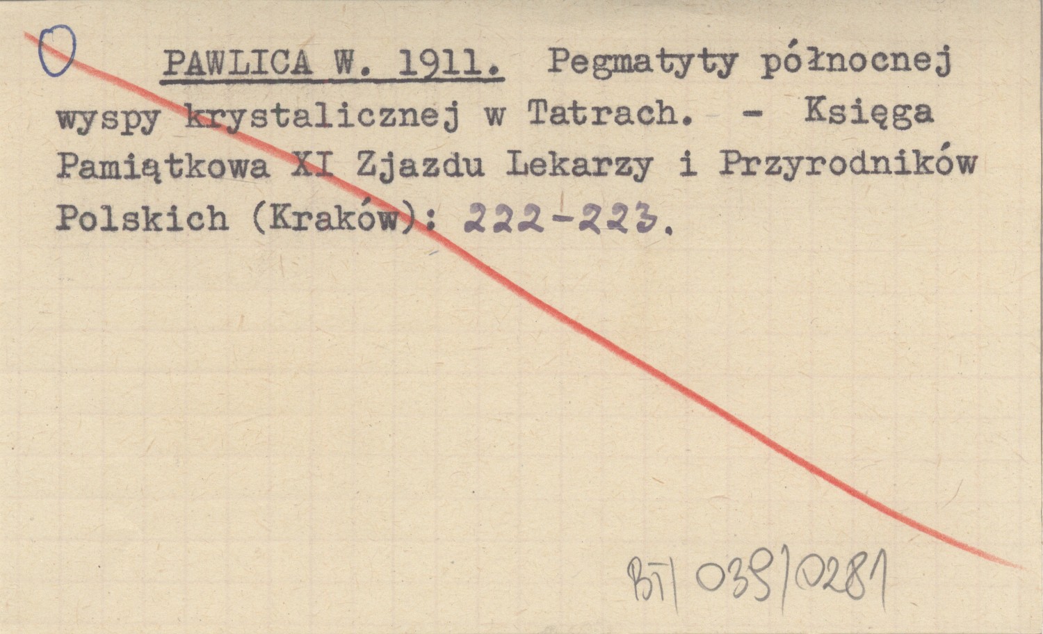 PAWLICA W. 1911 Pegmatyty północnej wyspy krystalicznej w Tatrach.