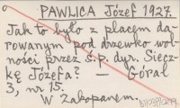 PAWLICA Józef 1927 Jak to było z placem darowanym pod drzewko wolności przez ś.p. dyr. Sieczkę Józefa?