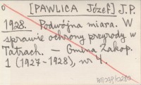 J. P. [PAWLICA Józef] 1928 Podwójna miara. W sprawie ochrony przyrody w Tatrach.