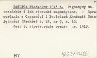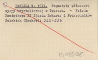 PAWLICA W. 1911 Pegmatyty północnej wyspy krystalicznej w Tatrach.