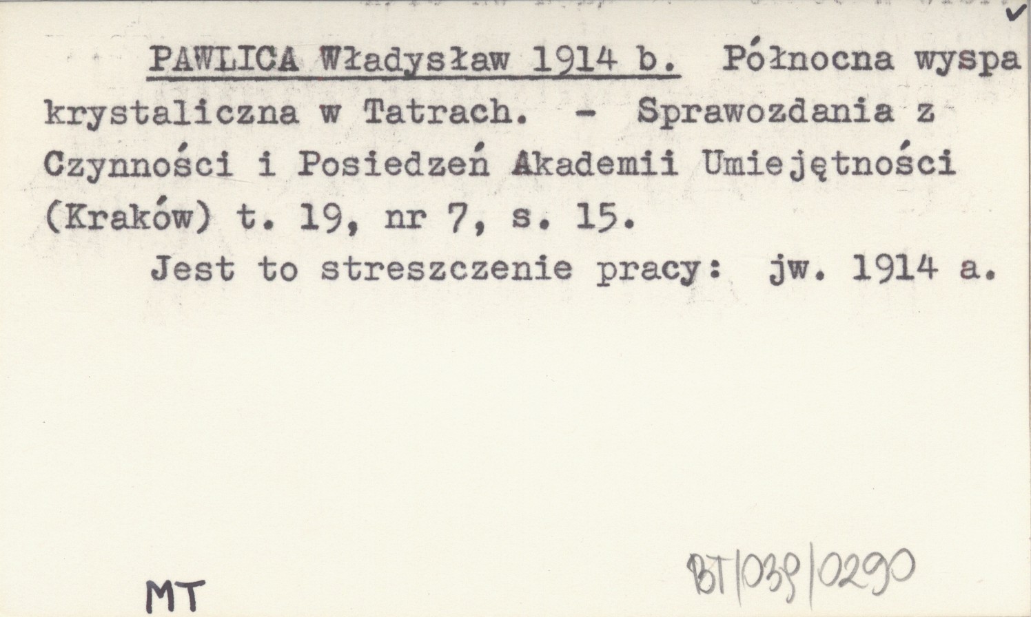 PAWLICA Władysław 1914 b Północna wyspa krystaliczna w Tatrach.