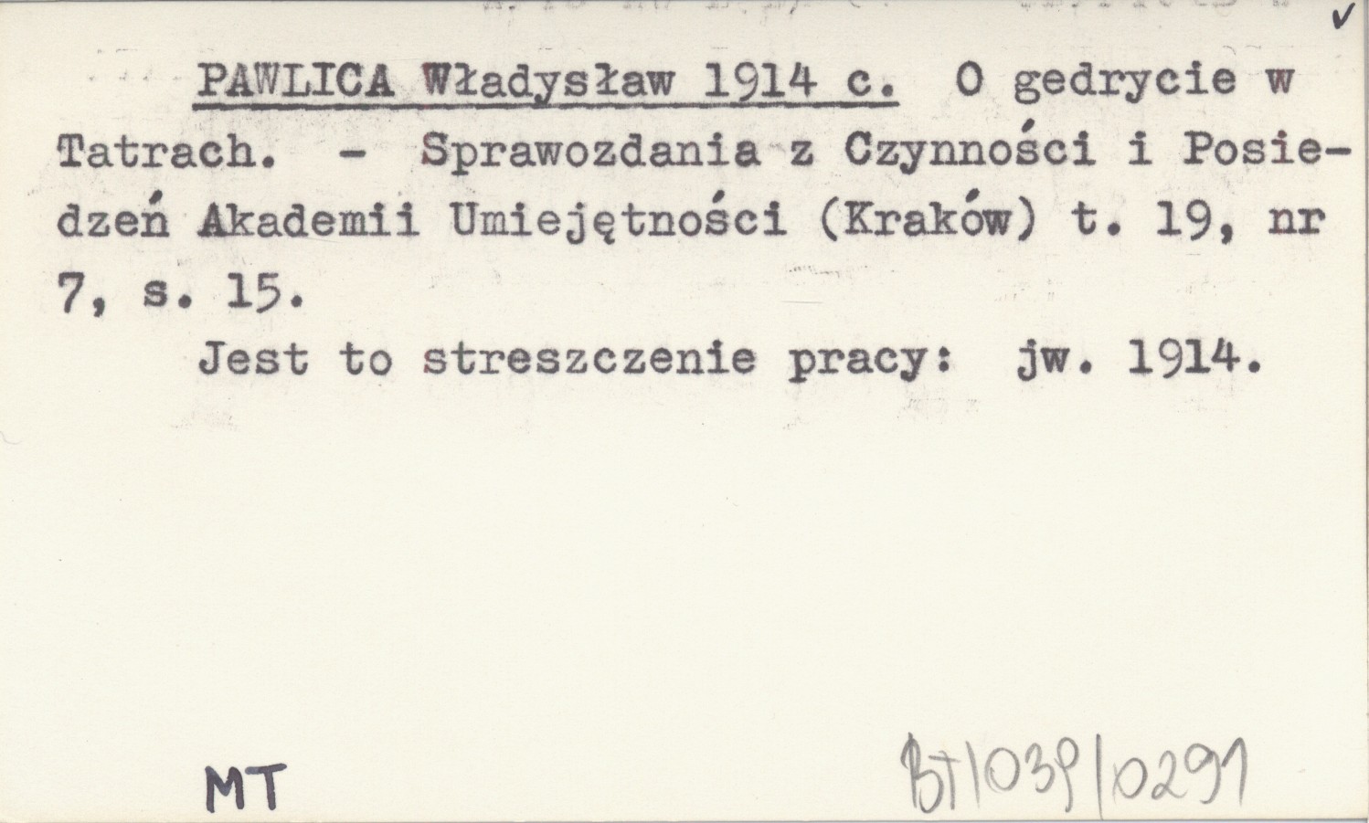 Sprawozdania z Czynności i Posiedzeń Polskiej Akademii Umiejętności (Kraków) , T. 19, nr 7: 15. Jest to streszczenie pracy: jw. 1914