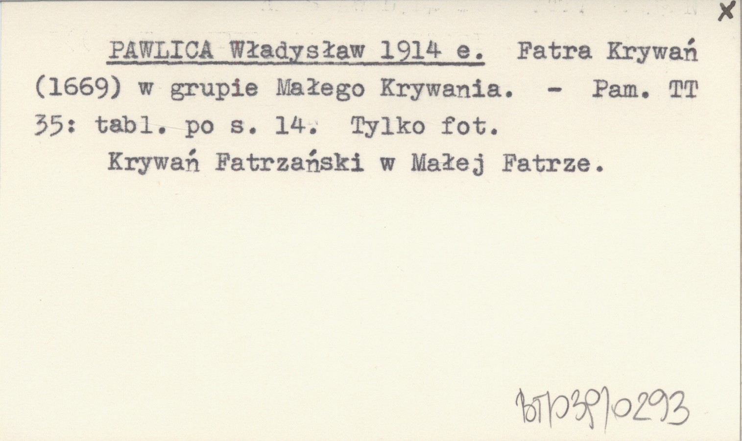 PAWLICA Władysław 1914 e Fatra Krywań (1669) w grupie Małego Krywania.