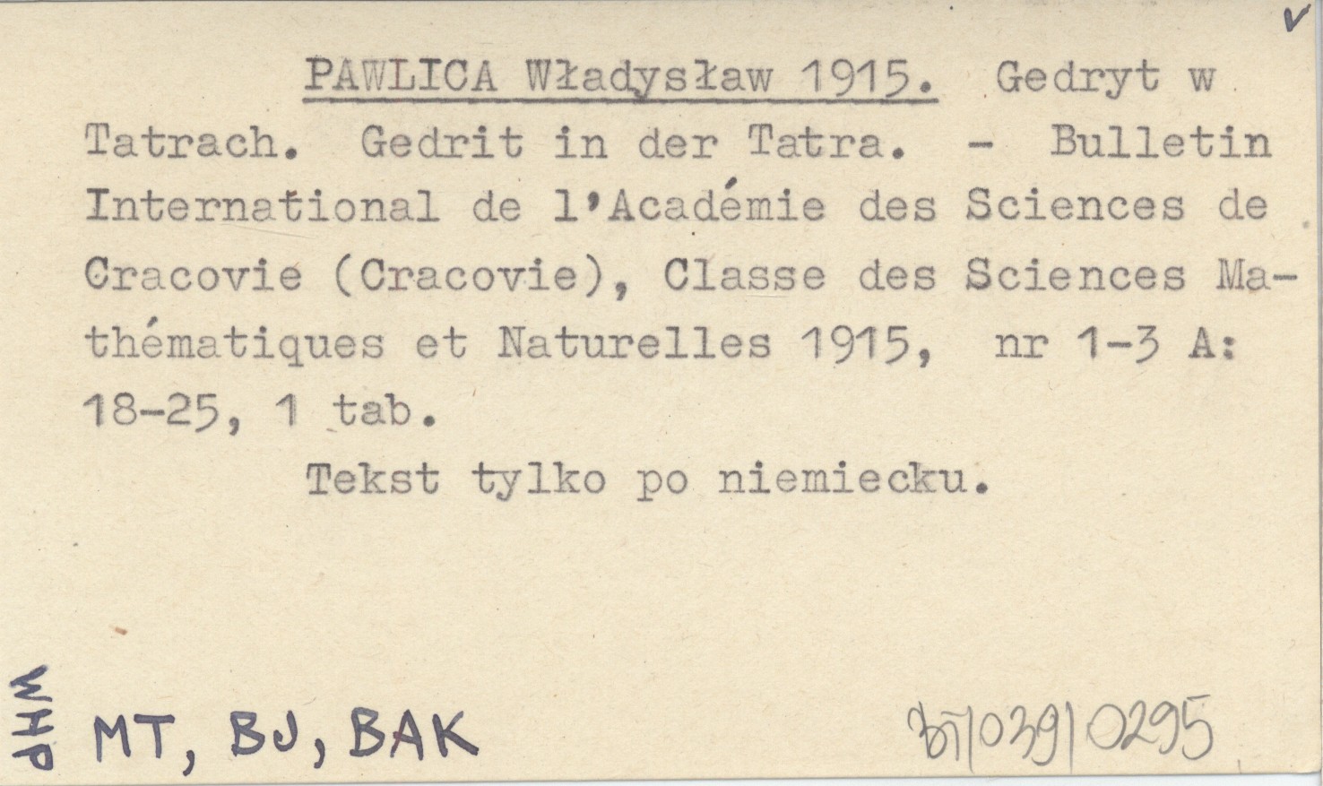 PAWLICA Władysław 1915 Gedryt w Tatrach. Gedrit in der Tatra.