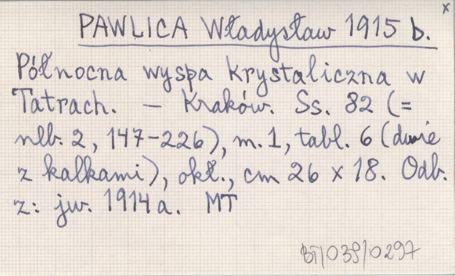 PAWLICA Władysław 1915 b Północna wyspa krystaliczna w Tatrach.