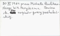 , Zawiera ok. 500 zapisów gwary podhalańskiej. Rękopisy, maszynopisy i zapiski na marginesach egzemplarza owego słownika. Wszystko to przekazane 20 XI 1964 przez Michała Pawlikowskiego W. H. Paryskiemu.
