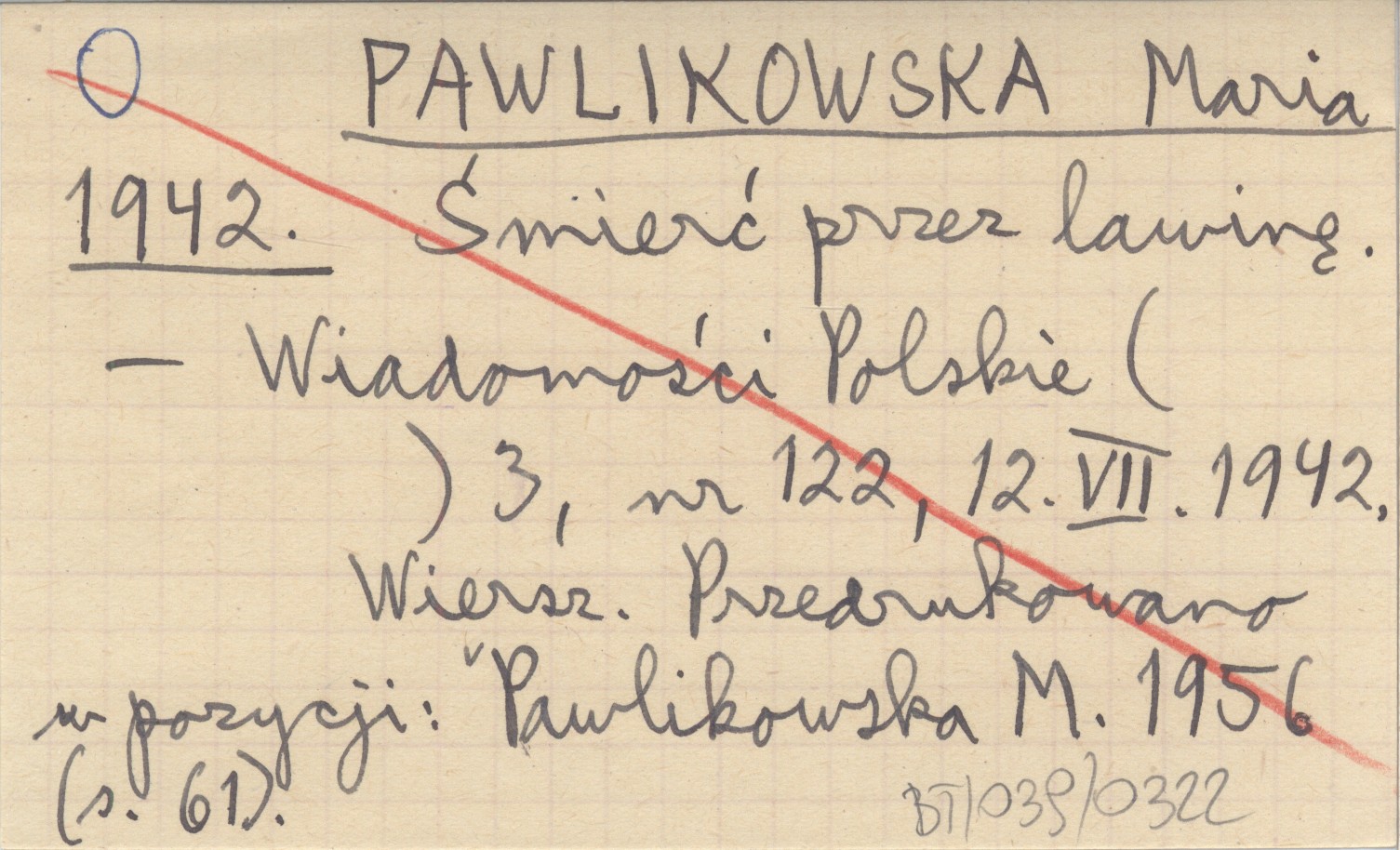 Wiadomości Polskie, 3, nr 122 (12 VII 1942). Wiersz. Przedrukowano w pozycji: PAWLIKOWSKA M. 1956: 61.