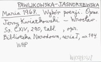PAWLIKOWSKA-JASNORZEWSKA Maria 1967 Wybór poezji.