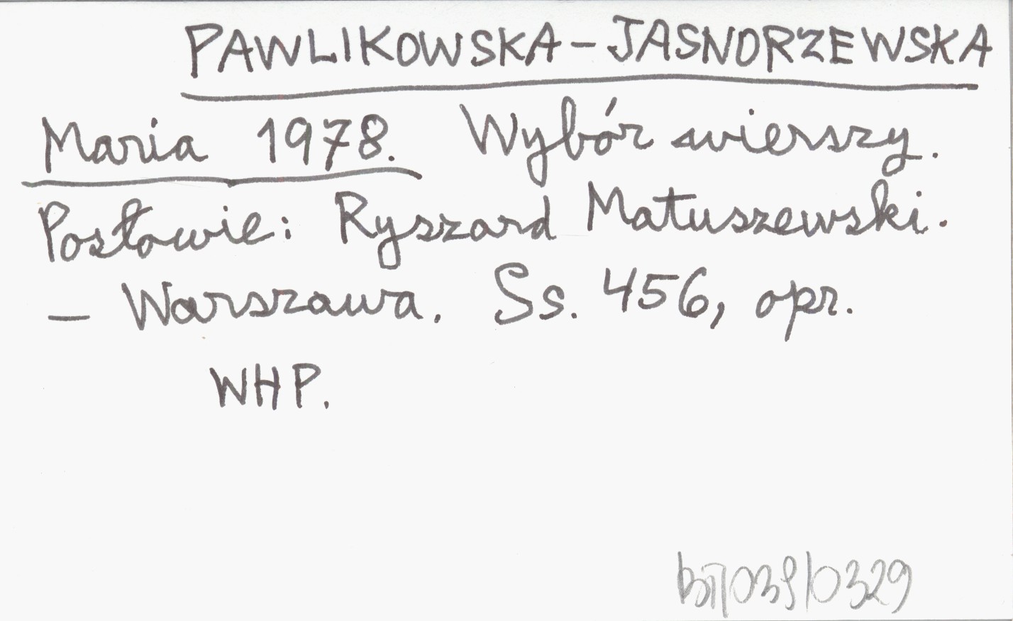 PAWLIKOWSKA-JASNORZEWSKA Maria 1978 Wybór wierszy.
