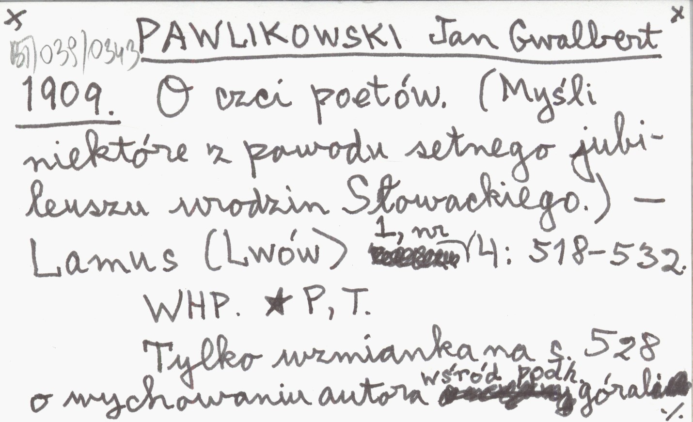 PAWLIKOWSKI Jan Gwalbert 1909 O czci poetów. (Myśli niektóre z powodu setnego jubileuszu urodzin Słowackiego).