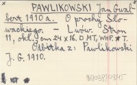 PAWLIKOWSKI Jan Gwalbert 1910 a O prochy Słowackiego.