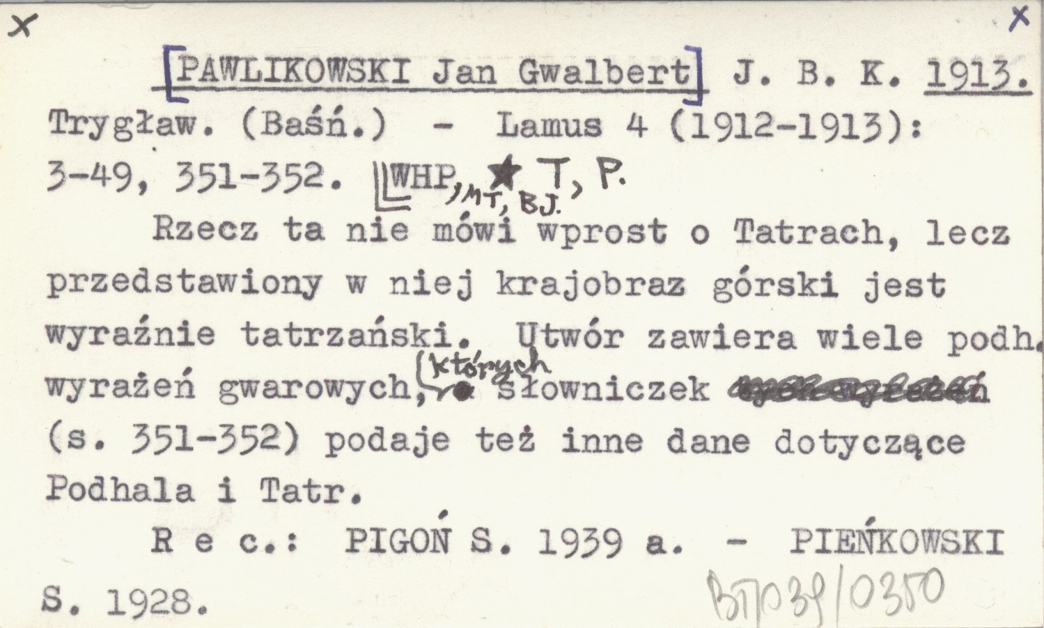 J. B. K. [PAWLIKOWSKI Jan Gwalbert] 1913 Trygław. (Baśń).