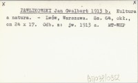 PAWLIKOWSKI Jan Gwalbert 1913 a Kultura a natura.
