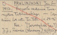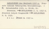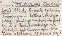 PAWLIKOWSKI Jan Gwalbert 1913 f [Streszczenie przemówienia na temat ochrony Tatr w imieniu Sekcji Ochrony Tatr TT na wiecu publicznym TT w Zakopanem, dnia 3 VIII 1913.]