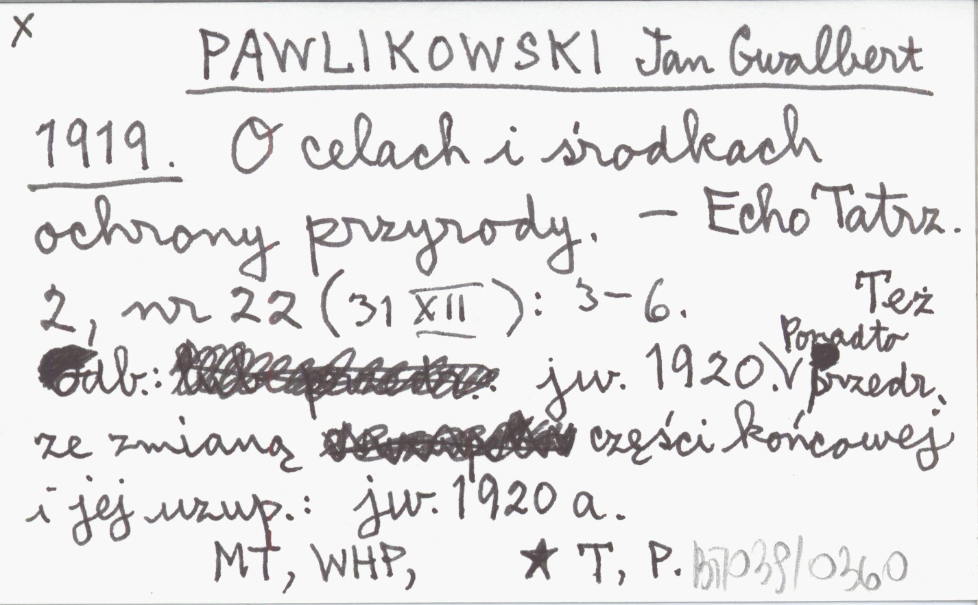 Echo Tatrzańskie, 2, nr 22 (31 XII): 3-6. Też odb.: jw. 1920. Ponadto przedruk ze zmianą części końcowej i jej uzup.: jw. 1920 a.