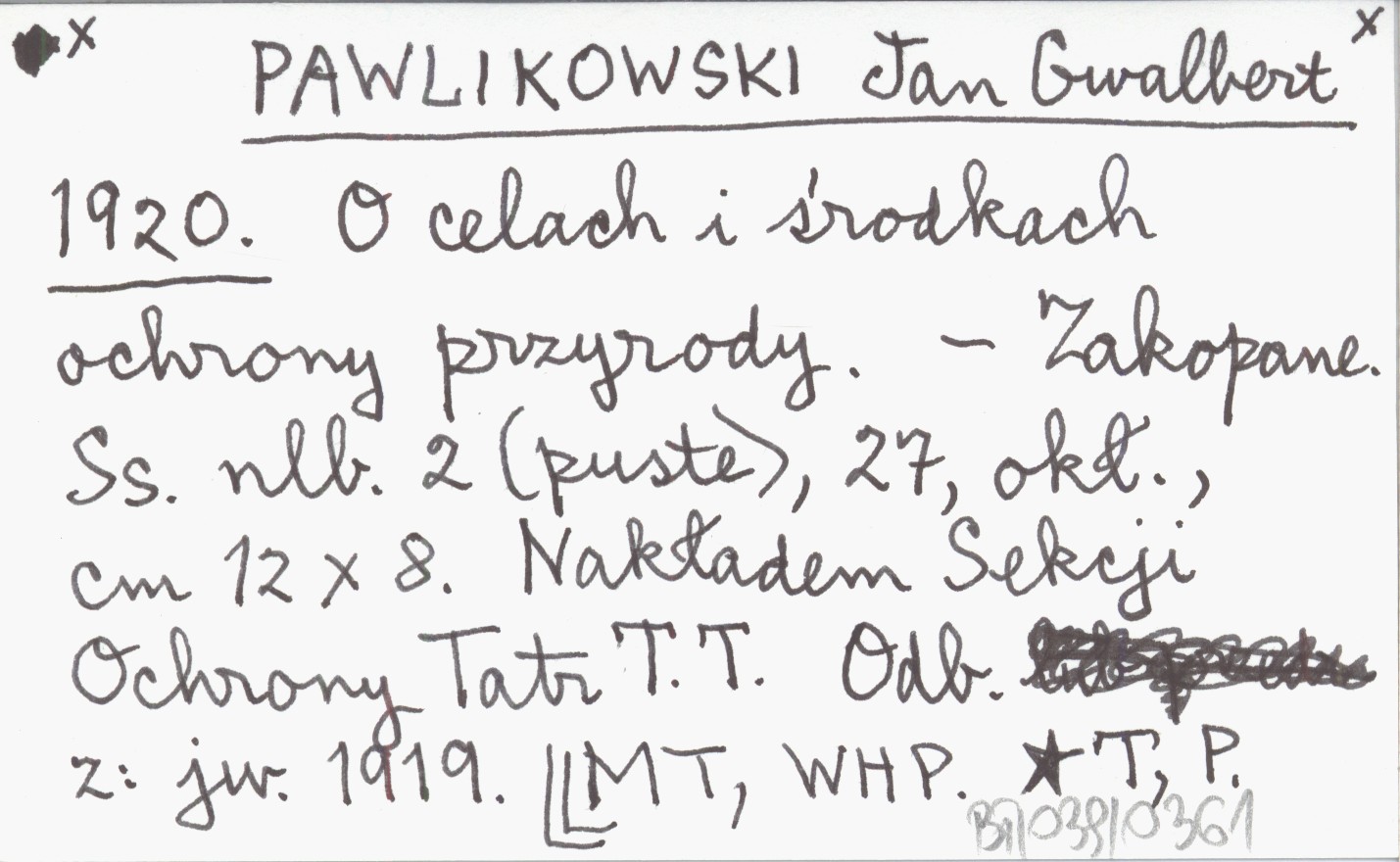 PAWLIKOWSKI Jan Gwalbert 1920 O celach i środkach ochrony przyrody.