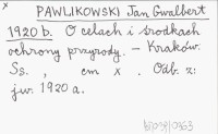 PAWLIKOWSKI Jan Gwalbert 1920 b O celach i środkach ochrony przyrody.