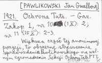 PAWLIKOWSKI Jan Gwalbert 1921 a [Krótsze i dłuższe wypowiedzi na temat ochrony Tatr.]