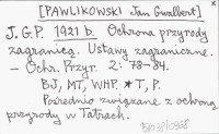 J.G.P. [PAWLIKOWSKI Jan Gwalbert] 1921 b Ochrona przyrody zagranicą. Ustawy zagraniczne.