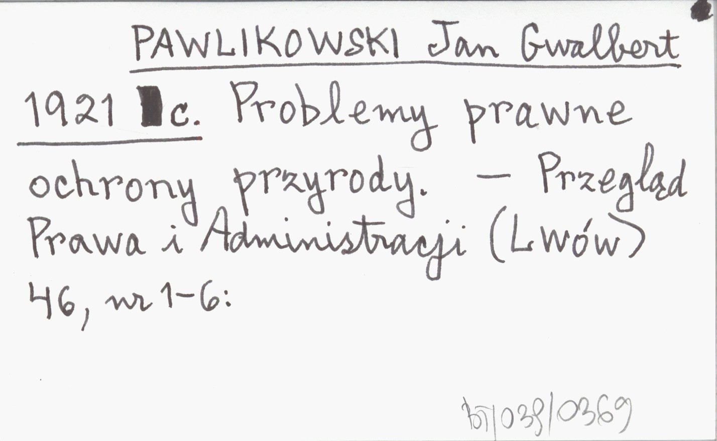 PAWLIKOWSKI Jan Gwalbert 1921 c Problemy prawne ochrony przyrody.