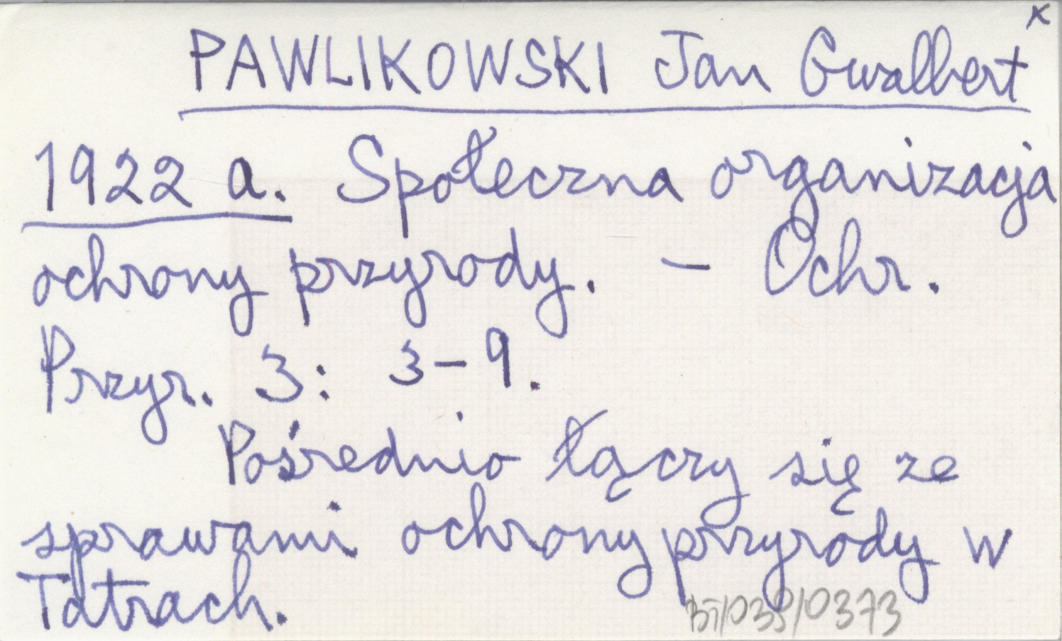 PAWLIKOWSKI Jan Gwalbert 1922 a Społeczna organizacja ochrony przyrody.