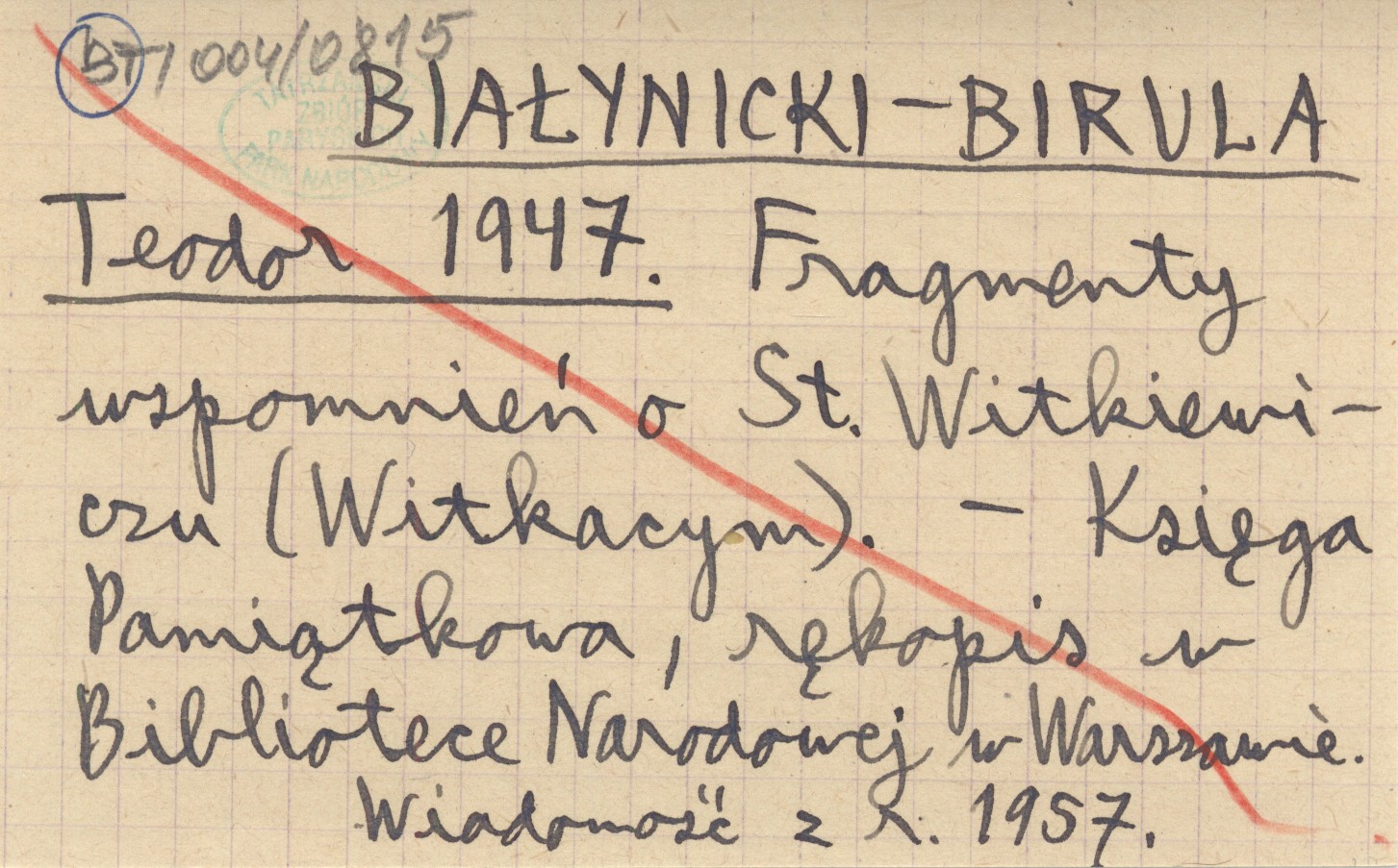 BIAŁYNICKI-BIRULA Teodor 1947 Fragmenty wspomnień o St. Witkiewiczu (Witkacym).