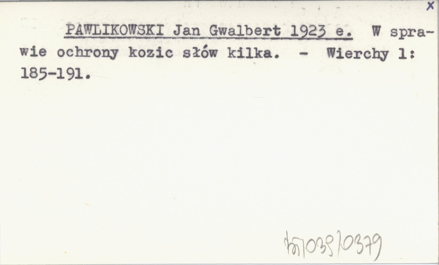 PAWLIKOWSKI Jan Gwalbert 1923 e W sprawie ochrony kozic słów kilka.