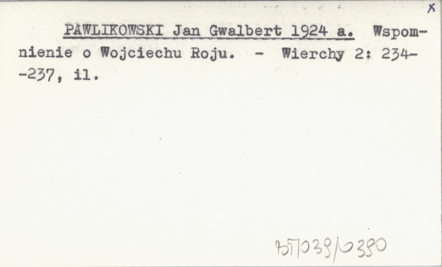 PAWLIKOWSKI Jan Gwalbert 1924 a Wspomnienie o Wojciechu Roju.