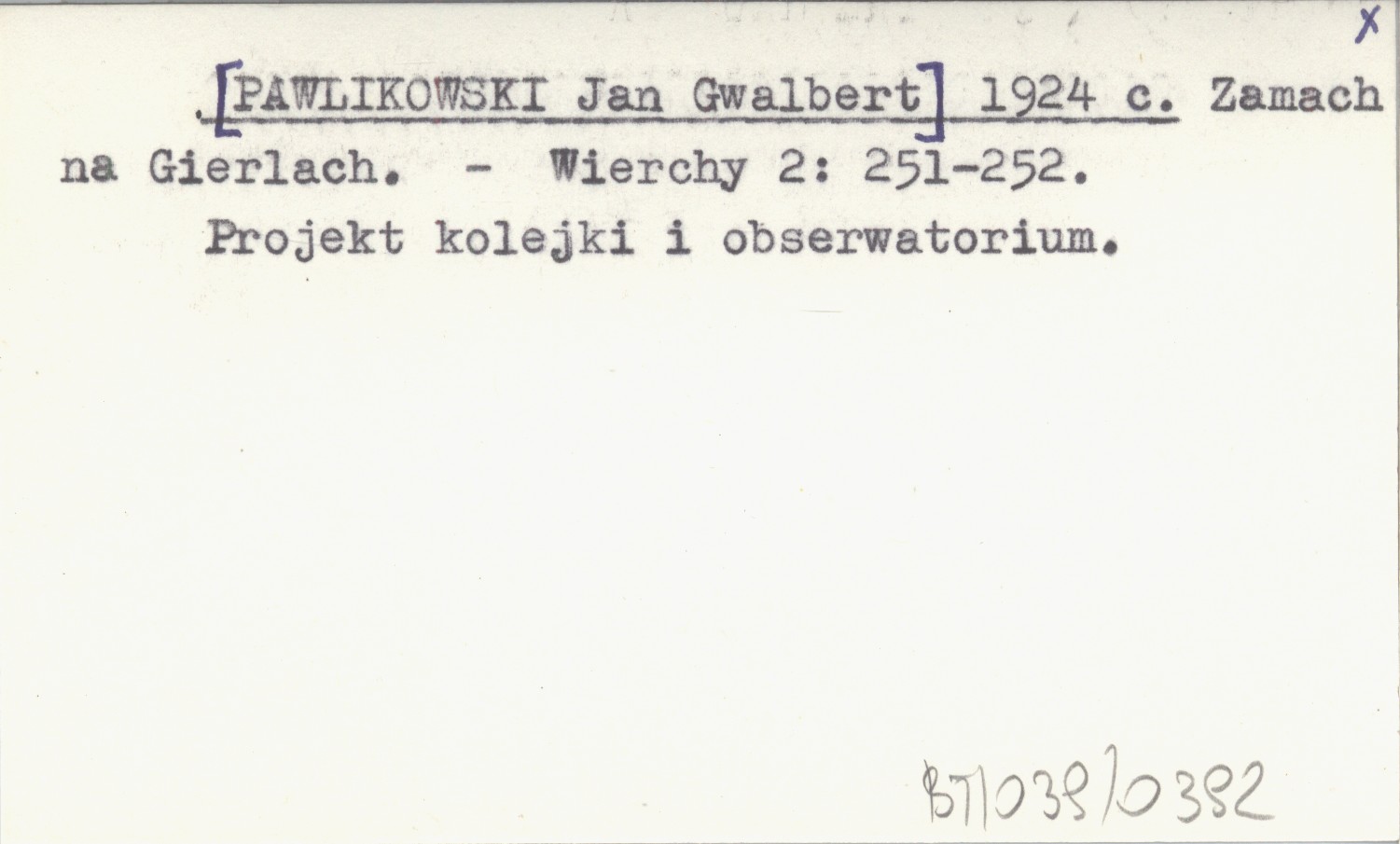 Wierchy, 2: 251-252. Projekt kolejki i obserwatorium.