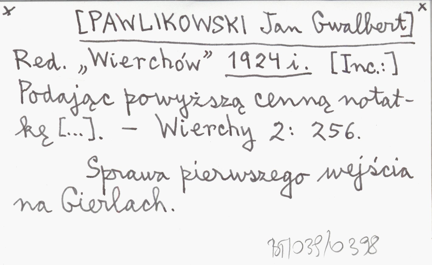 Red. "Wiechów" [PAWLIKOWSKI Jan Gwalbert] 1924 i [Inc.:] Podając powyższą cenną notatkę [...].