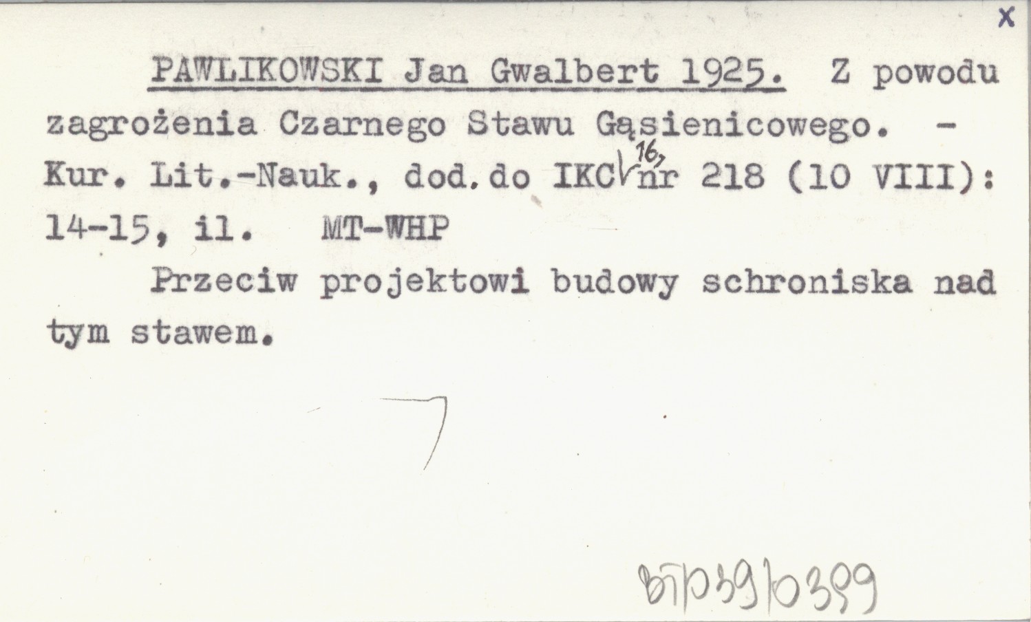 PAWLIKOWSKI Jan Gwalbert 1925 Z powodu zagrożenia Czarnego Stawu Gąsienicowego.