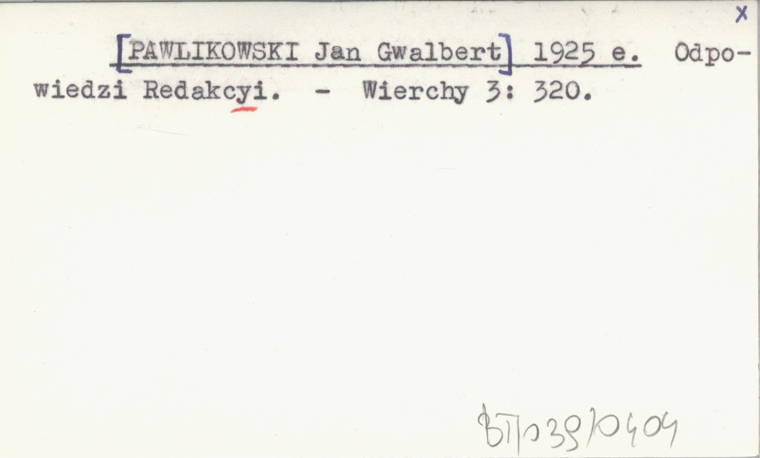 [PAWLIKOWSKI Jan Gwalbert] 1925 e Odpowiedzi Redakcyi.