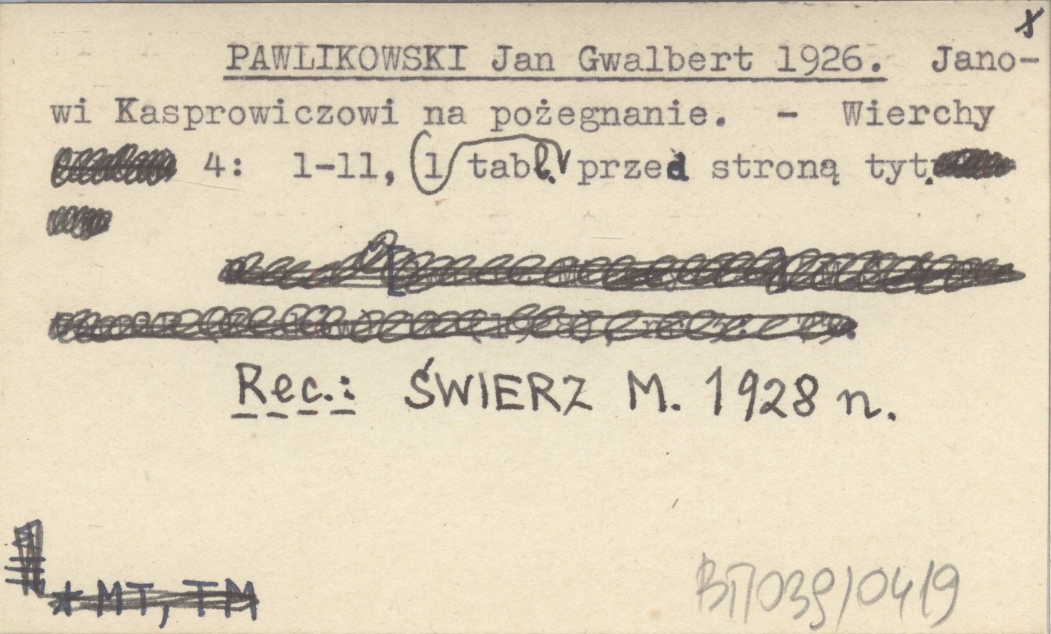 PAWLIKOWSKI Jan Gwalbert 1926 Janowi Kasprowiczowi na pożegnanie.