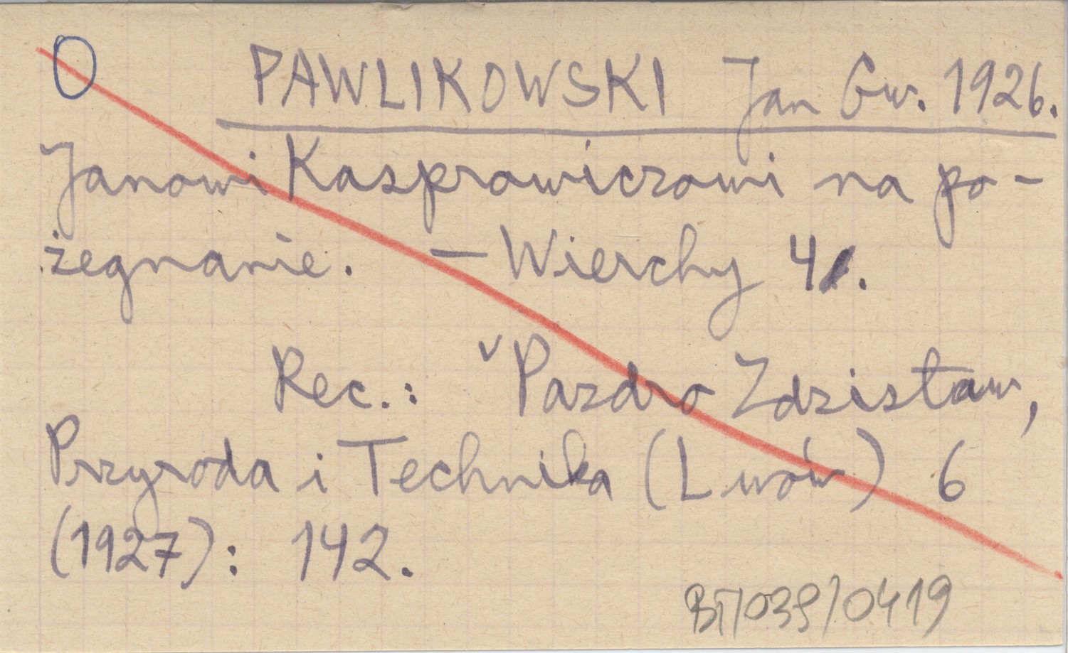 Wierchy, 4: 1-11, 1 k. przed s. tyt. REC: ŚWIERZ M. 1928 n ; PAZDRO Zdzisław, Przyroda i Technika (Lwów) 6 (1927): 142 ;