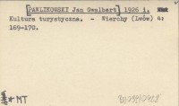 [PAWLIKOWSKI Jan Gwalbert] 1926 i Kultura turystyczna.
