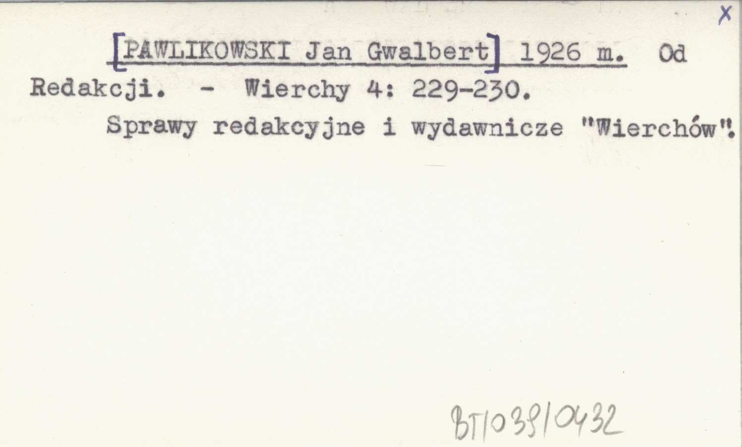 Wierchy, 4: 229-230. Sprawy redakcyjne i wydawnicze "Wierchów".