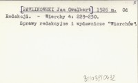 [PAWLIKOWSKI Jan Gwalbert] 1926 m Od Redakcji.