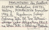 PAWLIKOWSKI Jan Gwalbert SZAFER, Władysław. ; GOETEL, Walery. ; ROMANISZYN, Bronisław. ; 1926 n Regulamin Sekcji Ochrony Tatr Pol. Tow. Tatrzańskiego jako delegatury P.R.O.P. na teren Tatr i Skalnego Podhala.
